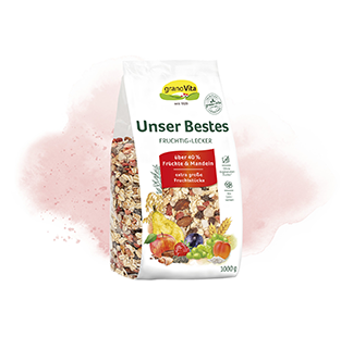 Egal, ob Sie sich Ihr morgendliches Müsli durch eine große Vielfalt an Trockenfrüchten versüßen lassen, knackige Nüsse bevorzugen oder lieber ganz auf Rosinen verzichten – unser Sortiment bietet Ihnen eine große Auswahl. Da ist für jeden Geschmack das passende Müsli dabei.